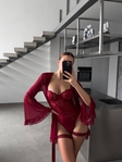 Розкішний комплект: боді + халат + панчохи ✨Створений для особливих моментів та неймовірної впевненості.Боді має відкритий доступ, що додає образу сміливості та спокуси. Легкий халат виглядає елегантно та ніжно, а панчохи в комплекті завершують ідеальний образ.🔥