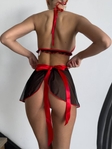 Провокаційний костюм — для тих, хто любить грайливість, сміливість і трохи драматургії в образі👩🏼⚕️🩺💉💊Комплект складається з:•міні-бра з червоними хрестиками,•прозорої спіднички з сатиновим фартушком,•кокетливого обруча медсестри•трусиків