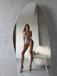 Хочеш відчути захват від одного дотику? Тоді він точно тобі потрібен. Модель створена, щоб привертати увагу до твоєї персони. Купальник відшитий на подвійній тканині і має зйомні поролонові вкладиші, а завищена посадка трусиків робить акцент на лінії бедер, що суттєво подовжує ніжки.