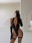Цей спокусливий мереживний боді - справжня знахідка для тих, хто любить сміливість і естетику в одному флаконі🤍Глибокий виріз, відкриті стегна, грація ліній - ідеальний look для особливих вечорів❤️🔥У комплекті: боді, рукавички та стрічки-підтяжки, гартери.Матеріал: ніжне французьке мереживо.Завʼязується на шиї, що дозволяє регулювати посадку.