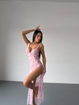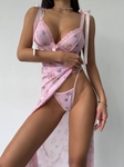 Ніжний квітковий пеньюар, що створює романтичний силует та підкреслює природну жіночність. Легка тканина м’яко огортає тіло, а витончені деталі додають образу елегантності. Модель виглядає дуже гармонійно в будь-якому русі. Трусики в комплекті.Ніжний, граційний та неймовірно естетичний образ.