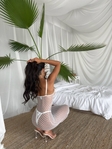 Ніжний, привабливий і такий чарівний пеньюар. Виготовлений з ніжної сіточки та прикрашений металевою фурнітурою. Чашечка має кісточку, шлейка з регулятором. Трусики завищеної посадки з регуляторами обʼєму.