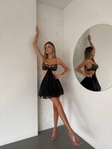 Сукня- пеньюар створена для тих, хто хоче вражати: поєднання ніжного мережива, органзи і акценту на талії робить образ ультражіночним і сміливим😍 Спокусливе мереживо в зоні бюста, бюстик на кісточках. Спідничка із легкої, майже невагомої подвійної органзи. Декоративні ланцюжки на бретелях - вишуканий акцент.Мереживні трусики в комплекті